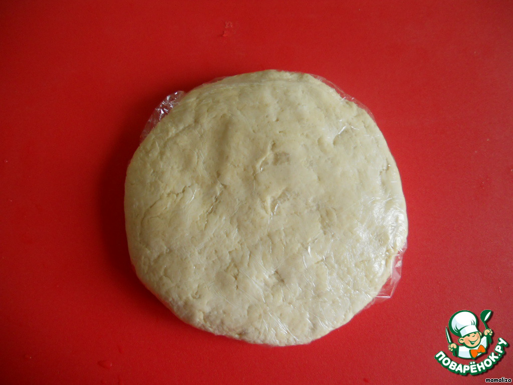 Добавим сметану и замесим мягкое тесто. Тесто завернем в пленку и положим в холодильник на полчаса.