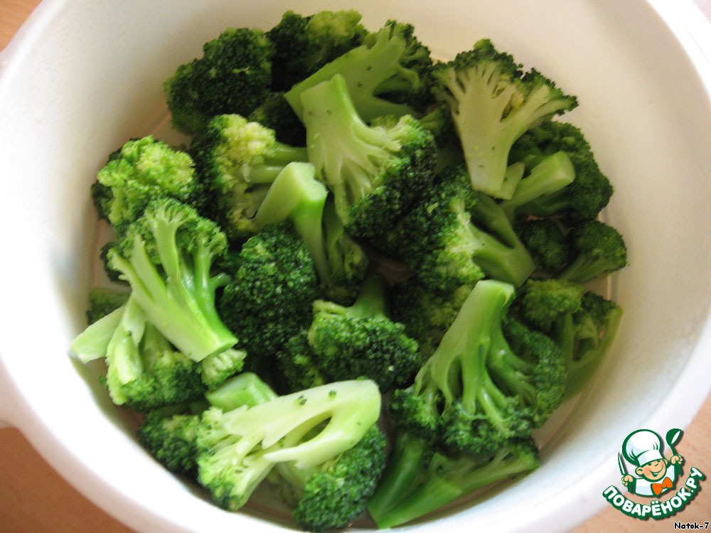 Брокколи (у меня была замороженная) отварить. Я сделала это в пароварке для микроволновки.