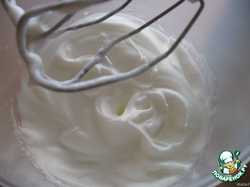 холодные белки с добавлением щепотки соли взбить миксером в плотную пену.