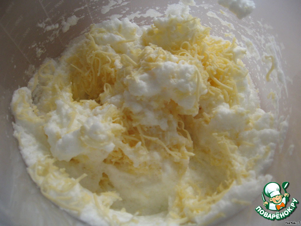Нежно и аккуратно добавить туда мелко натертый голландский сыр.