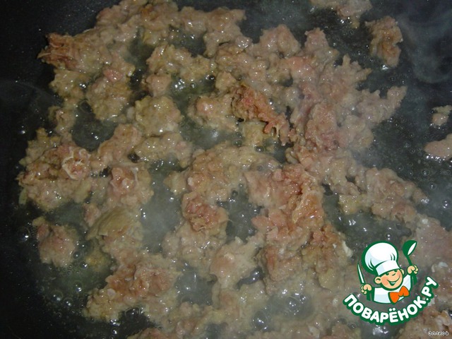 На растительном масле отдельно обжариваем фарш,