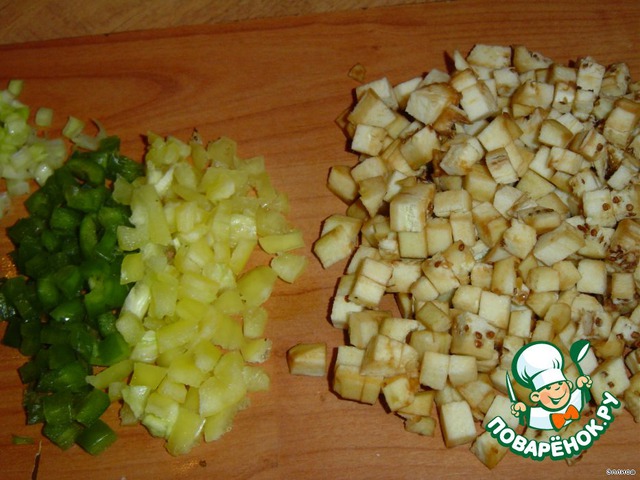 сладкий перец, очищенные нарезанные кубиками баклажаны.