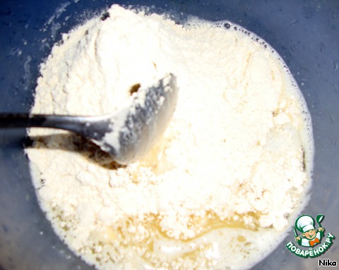Насыпать в эту смесь муку. Перемешать и поставить в тёплое место.