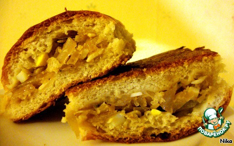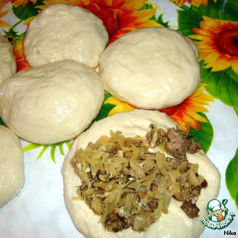 Тесто ставила дважды. Т. к. осталась начинка (капуста с луком и яйцом). Пропорции теста одинаковые, что в первый раз, то и во второй. В рецепте тесто для одной начинки. А начинок две. Первая начинка - жареная и тушeная свежая капуста с луком и яйцом. Другая начинка - обжаренный фарш с луком с добавлением солeного (очень ароматного) укропа и капусты.
