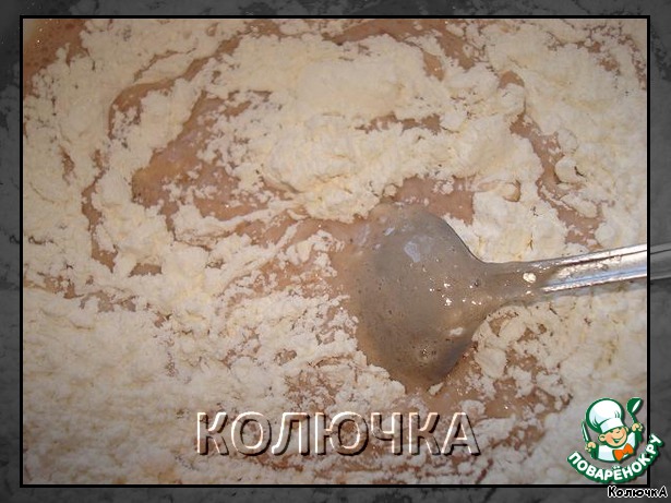 потом добавляем муку (я насчитала 9 ст.л. с горкой, у вас может и больше быть или меньше)