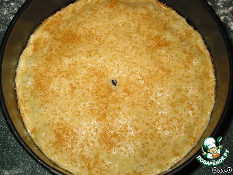 Выпекать пирог минут 30-35, он плохо подрумянивается, поэтому не стоит передерживать его в духовке, проверить только на готовность само тесто проткнув зубочисткой, если она сухая - пирог готов.