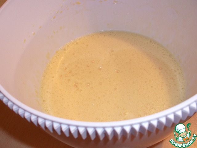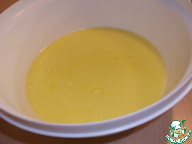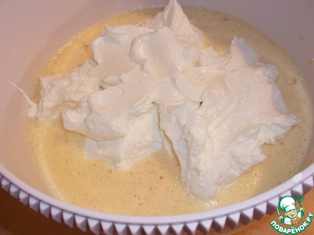 Оставшиеся 100 г сахара, ванильный пудинг, цедру и сок половины лимона, 5 яиц перемешать до гладкого состояния. Я взбила миксером на небольших оборотах.