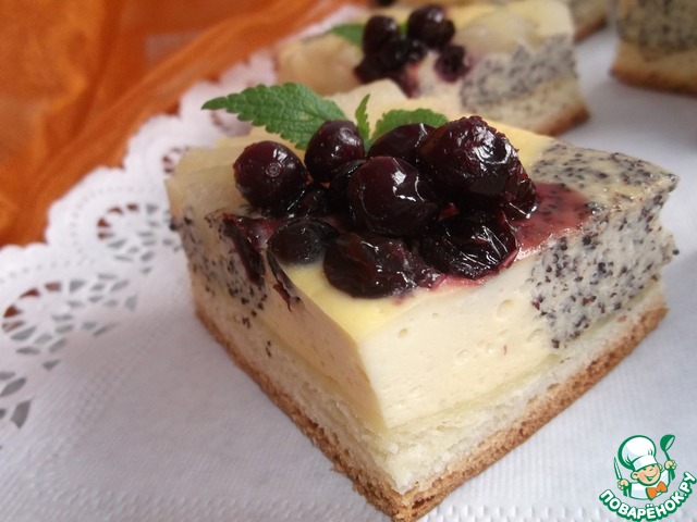 | Любители воздушной творожной начинки, ценители вкусной маковой выпечки, кто небезразличен к сочным фруктам - этот пирог для вас! |