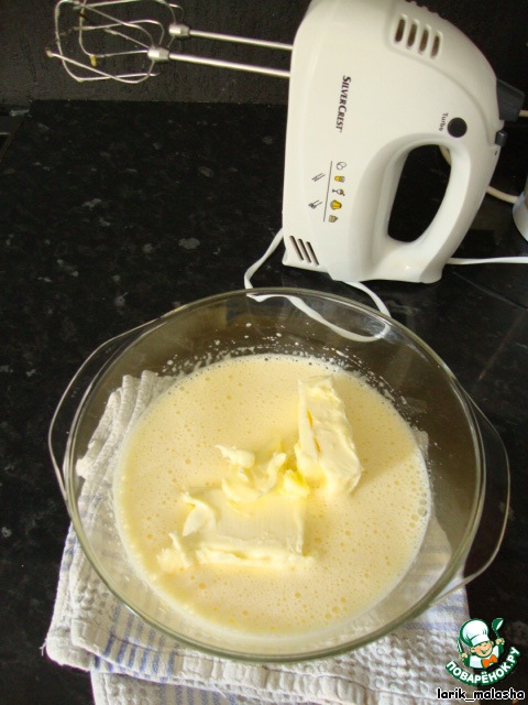 Ввести размягченное сливочное масло (180 г) и еще раз взбить.