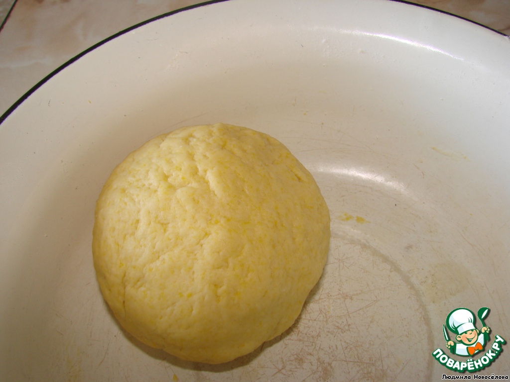 Порубить муку с маслом, сахарной пудрой, щепоткой соли, добавить желток, замесить эластичное тесто. (Я добавила немного молока, тесто было туговатым.)