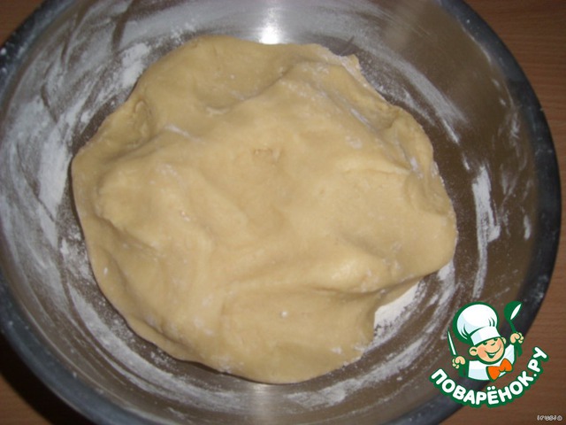 Добавить яйца, замесить некрутое тесто.Убрать на 20 минут в холодильник.(обязательно иначе его не раскатать.