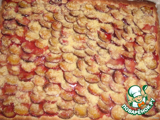 Посыпаем штройзелем и отправляем в духовку при температуре 160°-180° примерно на 30 минут.