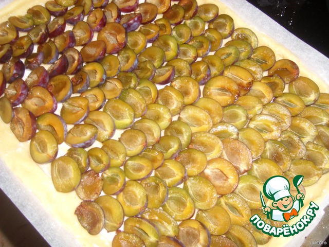 Моем сливы и, разламывая пополам,отделяем косточки.Раскладываем на тесто.