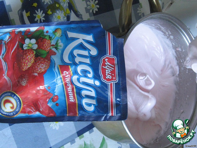 Белки взбить с 80 гр сахара и киселем. И тут я, что называется, провтыкала! Забыла совершенно о сахаре!!! А безе предательски взбилось...и меня успокаивает только то, что сахар вреден в больших количествах)))