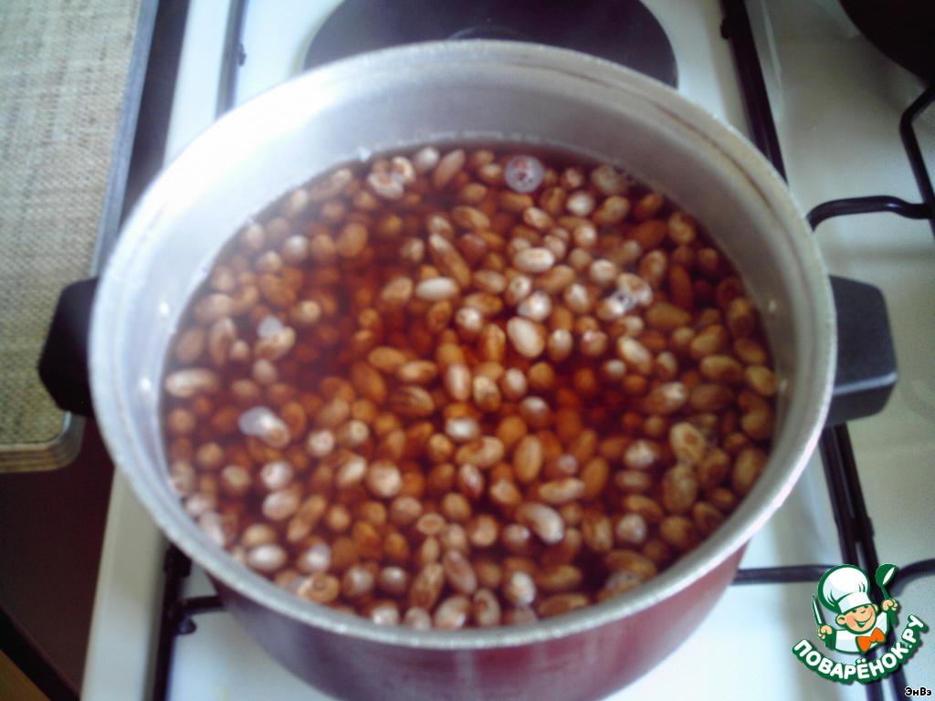 Варим фасоль (лобио). Цвет значения не имеет. В Грузии консервированную фасоль практически не употребляют, но вы можете использовать и ее, только нужно будет ее промыть, никакие соусы тут не нужны.