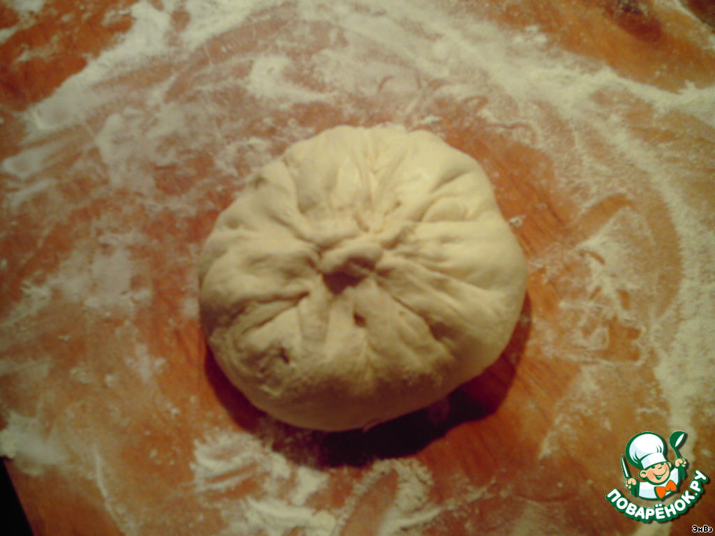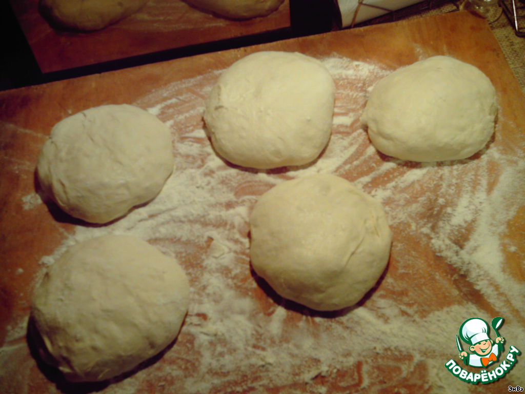 В это время уже и тесто поспело. Разминаем его, делим на части, скатываем в шарики и оставляем ненадолго на доске подойти заново.