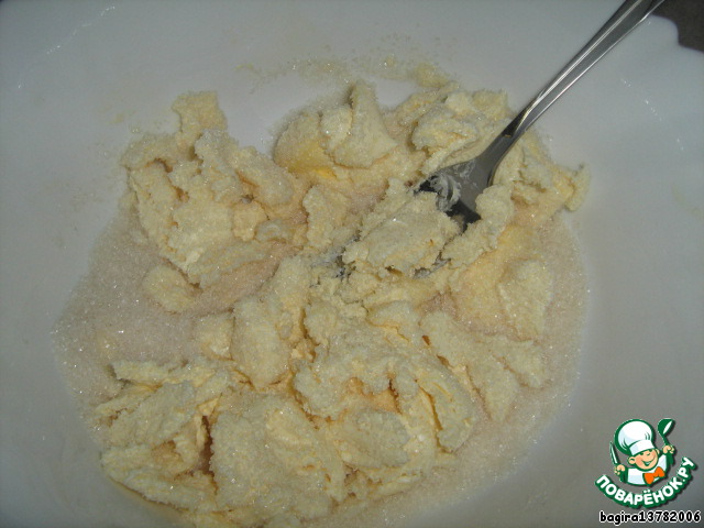 Мягкое масло смешаем с сахаром.