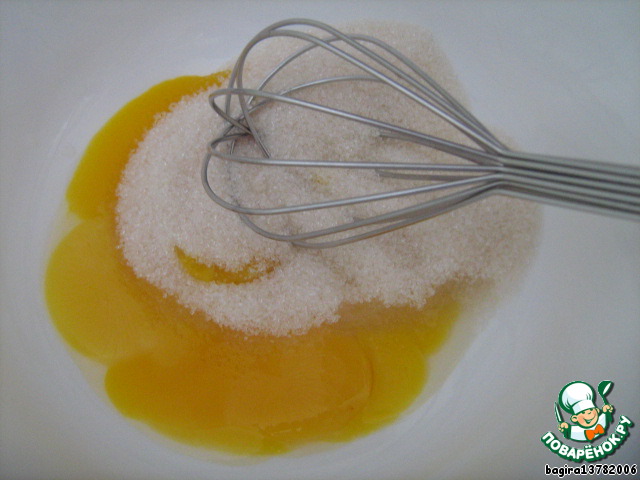 Сахар смешаем с желтками.