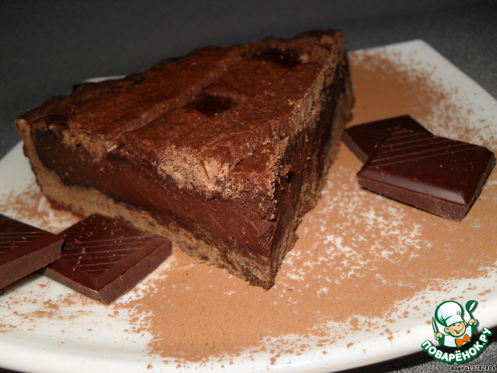 | Пирог с насыщенным шоколадным вкусом, в котором присутствует легкий терпкий привкус, свойственный горькому шоколаду. |