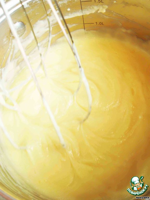 Молоко нагреваем с 50 г. сахара. Как только молоко начнет закипать — выливаем его в желтки и хорошо перемешиваем. Опять нагреваем молочно-желтковую смесь на небольшом огне, постоянно ее помешивая. Как только смесь загустеет, снимаем ее с огня и охлаждаем.