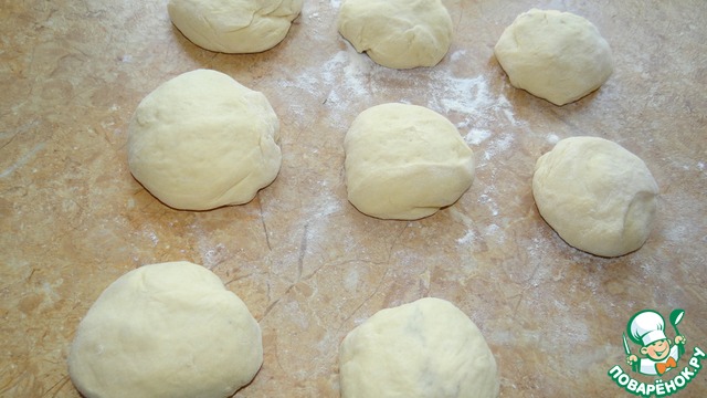 Тесто разделить на 8 равных частей;