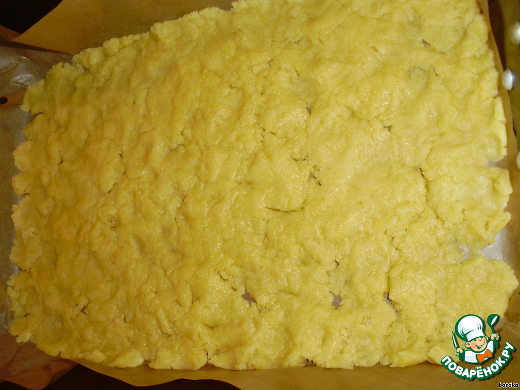 Тесто раскатать на противне на бумаге для выпечки.