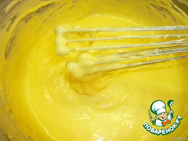 Приготовить тесто из муки, пекарского порошка, ванилина, яиц, сахара и маргарина. Тесто получается полужидким.