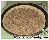 1-е тесто размять руками в форме, смазанной маргарином, оформив высокий бортик. На тесто равномерно выложить обжаренное мясо.