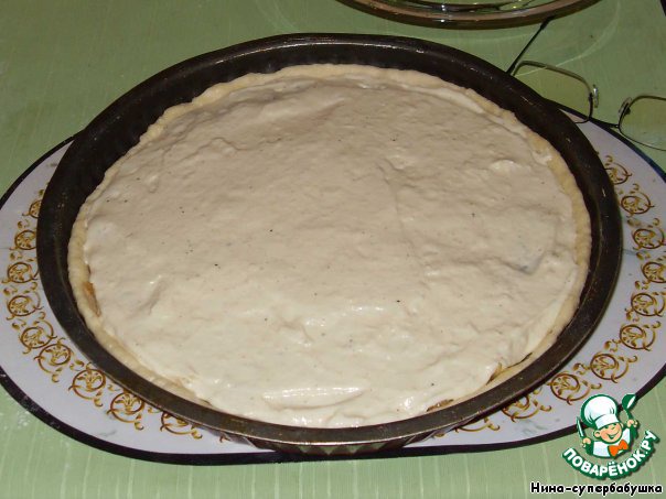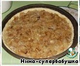 Сверху залить 2-м тестом. Выпекать при 200*С. Когда начнет зарумяниваться, температуру немного убавить. Можно прикрыть сверху фольгой. Время никогда специально не замеряла, но, наверное, минут 40. Я смотрю по виду. Поскольку ингредиенты начинки уже готовы, печь практически нужно до готовности теста.
