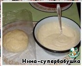 2-е тесто: майонез, яйца, разрыхлитель, соль и перец по вкусу взбить; всыпать муку и замесить тесто - оно должно быть густотой, как на оладьи.