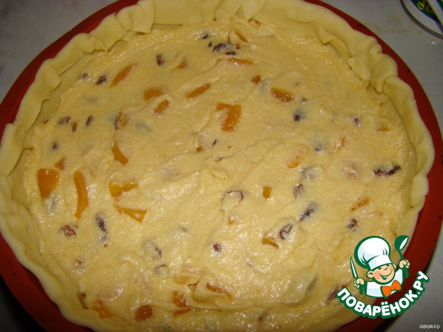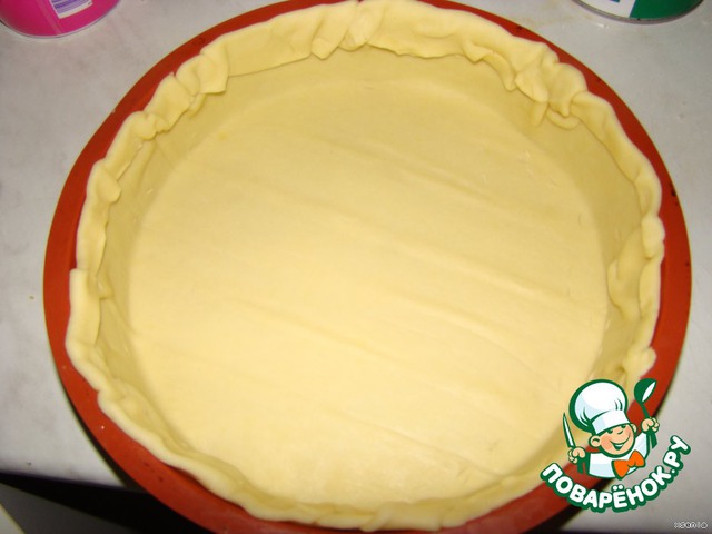 Песочное тесто я купила в этот раз готовое..По желанию можно сделать самим..Песочное тесто делается очень легко.Раскатайте тесто и выкладываем в форму промазанную маслом и немного присыпанную мукой