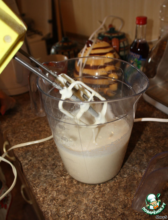 Взбить яйца, добавить разрыхлитель и манку. В оригинальном рецепте манка не добавлялась, при этом получался не пирог, а так называемый пудинг, он был рассыпчатый и его ели ложкой. Но это не совсем то, чего я хотела добиться.