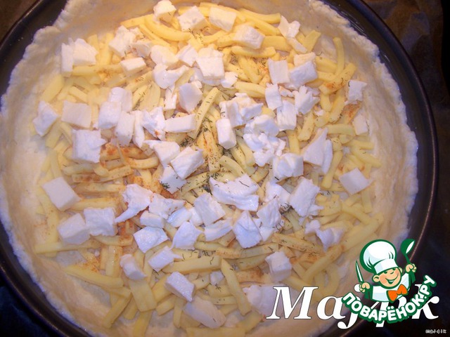Засыпать тёртой Гаудой и снова присыпать специями.