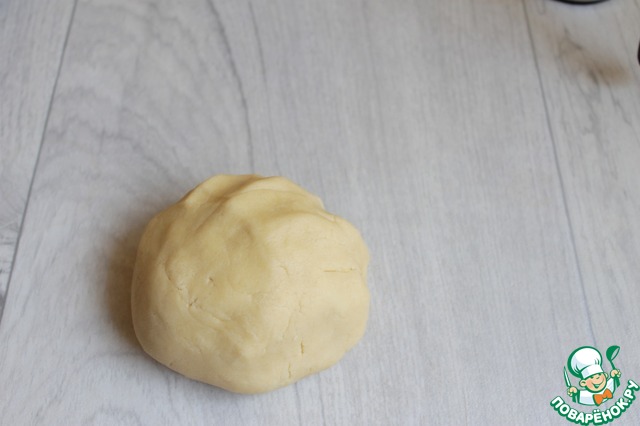 Итак сначала сделаем тесто. Смешаем желток, сахар, масло мягкое. Перемешаем и доваляя муку замесим быстро тесто.