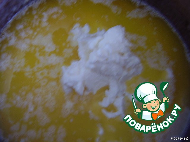 сметану (у меня жирная магазинная, но можно и домашнюю), опять перемешиваем