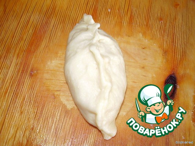 тесто руками делим на кусочки, руками лепим небольшую лепешку, выкладываем примерно 1 чайную ложку начинки (без выделившегося сока)