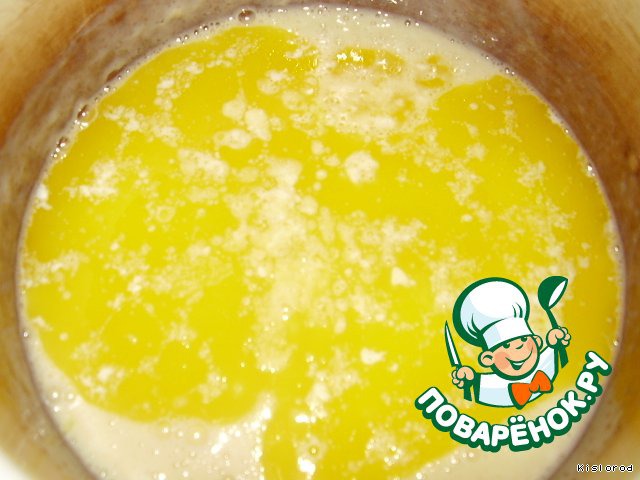 растопленное сливочное масло вместе с растительным, перемешиваем