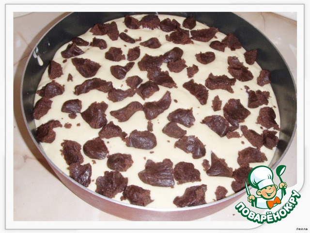 Вылить на заранее подготовленное шоколадное дно, разровнять.