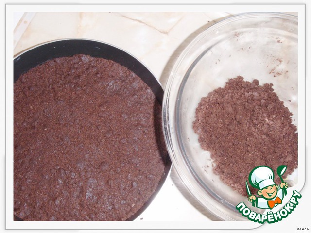 2/3 выложить на дно формы (по рецепту сьемная форма) и прижать немного. 1/3 скомкать не плотно, отложить в сторону.