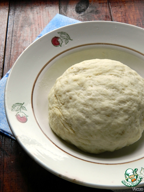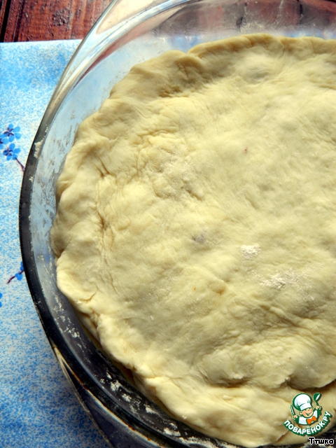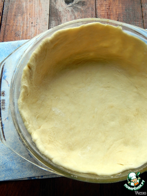 Из большей части раскатать круг, выложить в форму, сделав высокий бортик.