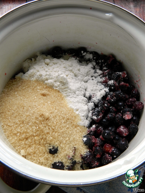 Черную смородину смешать с сахаром, крахмалом.