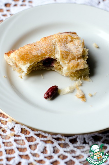 Ой, чуть не забыла, в кусочке пирога Galette des rois au cassis - Королевская галета с черной смородиной, который участвовал в фото-сессии и достался, соответственно, мне, оказалась фасоль, при чем я совершенно этого не ожидала, вот фото на нем даже можно рассмотреть оттиск от моих зубов на фасолине, значит, мне должно повезти!!!