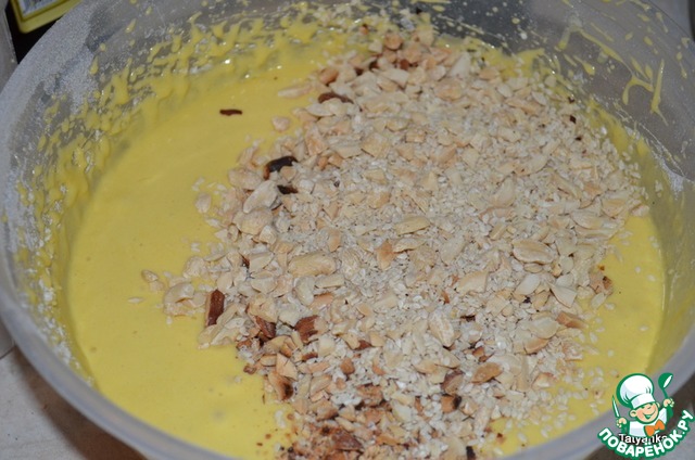 Если выпекаете в духовке, посыпьте форму сверху орешками. Выпекайте в ней тоже 40-50мин. при температуре 190град.