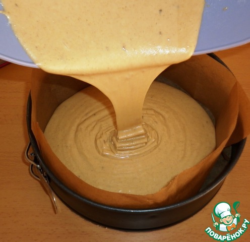 Вылить тесто в смазанную или застеленную пекарской бумагой форму (размер моей формы 22 см).