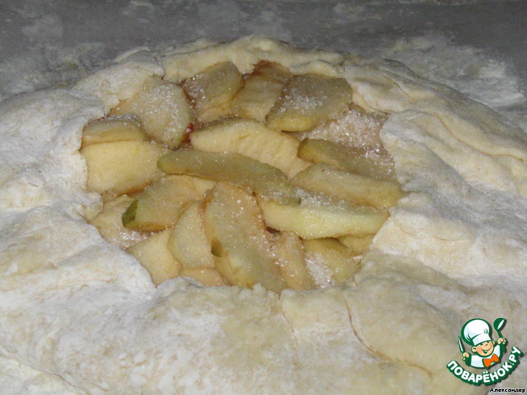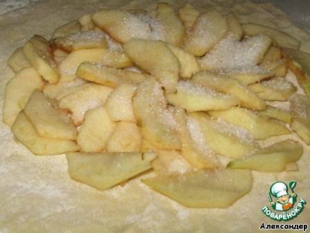 Яблоки посыпать сахаром и корицей и завернуть края теста, как на фото.