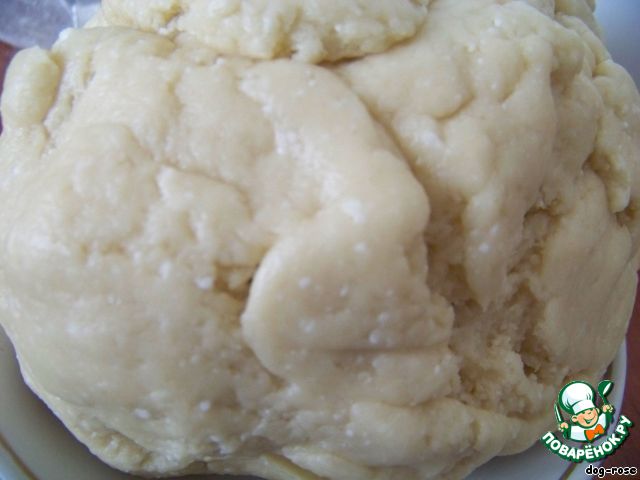 Масло, сахарный песок, творог (200 г), 1 яйцо взбиваем с щепоткой соли. Добавляем муку, соду (обязательно погашенную), вымешиваем тесто.
