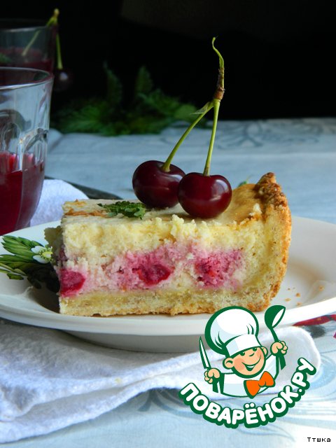 Пирог с начинкой из вишни и творога