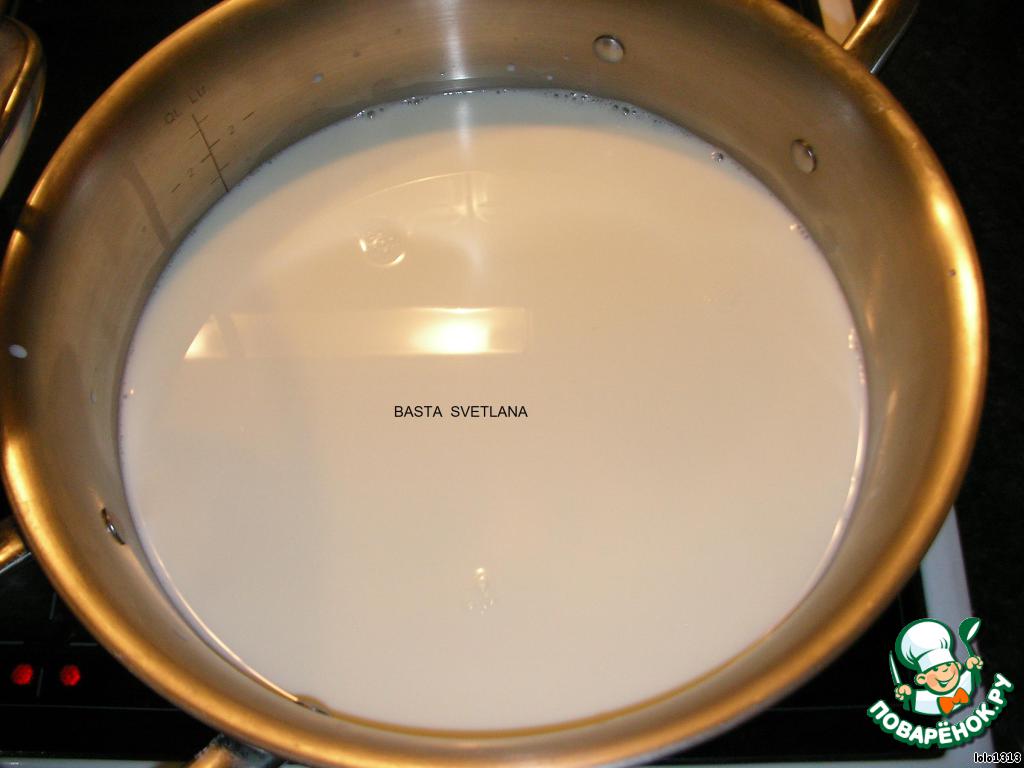 Поставить кастрюлю с молоком на огонь, довести до кипения.