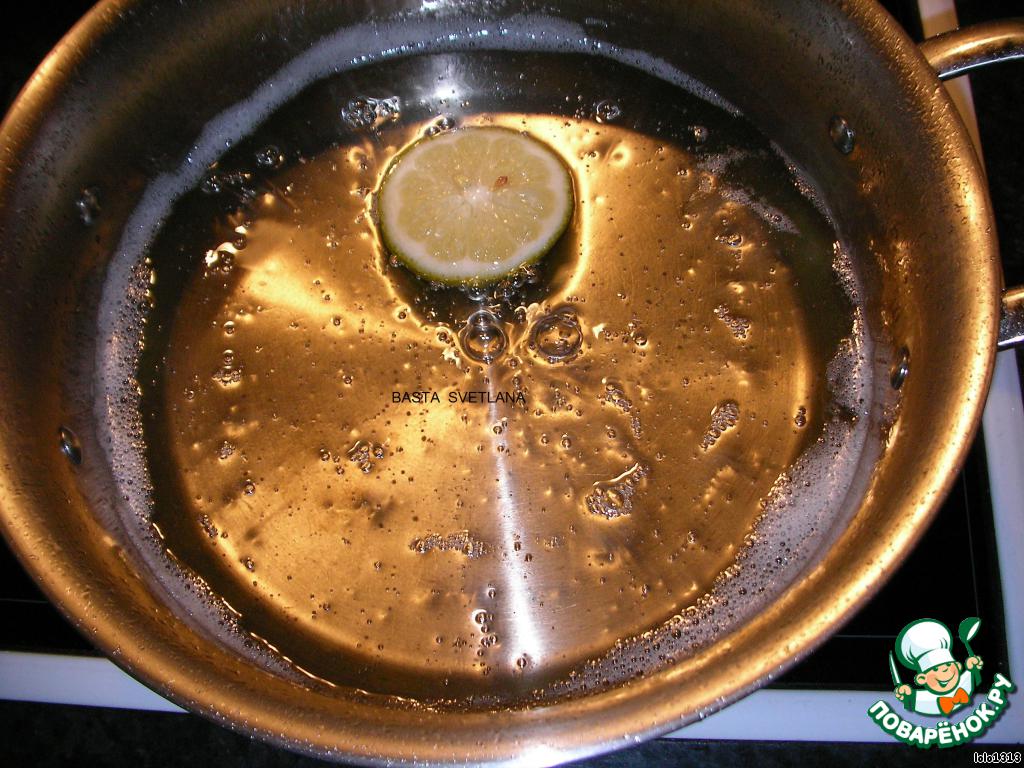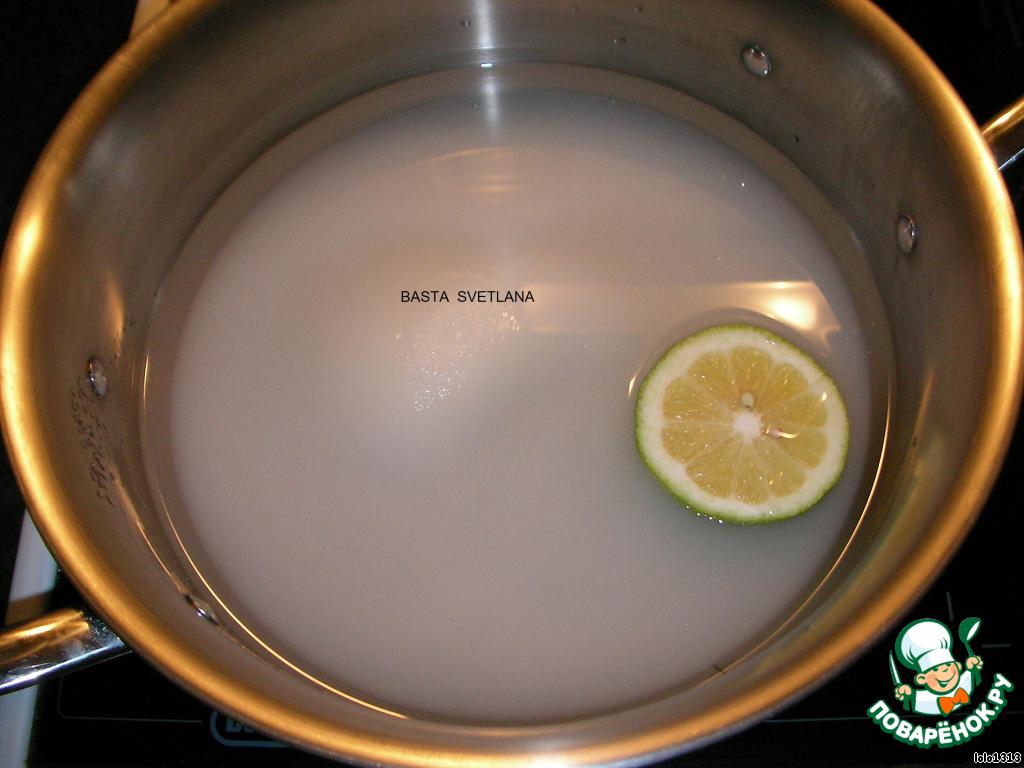 Сироп: 3,5 стак. сахара, 2,5 стак. воды, долька лимона.