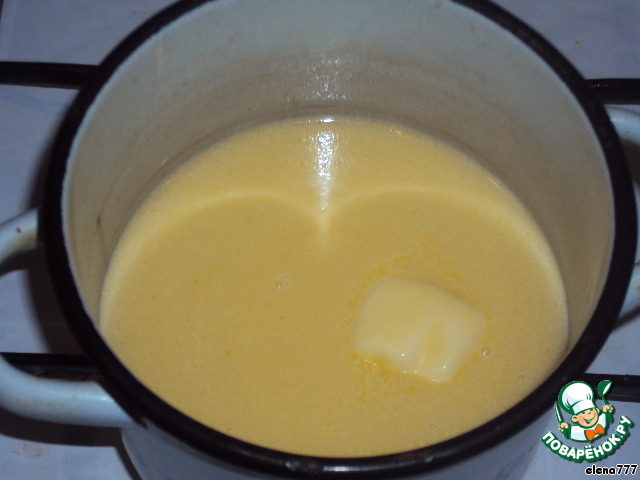 Теперь приготовим крем: вскипятить 100мл молока, добавить 50г масла и 150г коричневого сахара, снова довести до кипения и варить 3-4 минуты, помешивая.